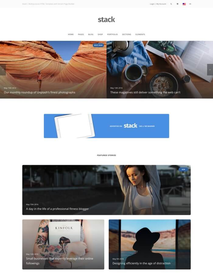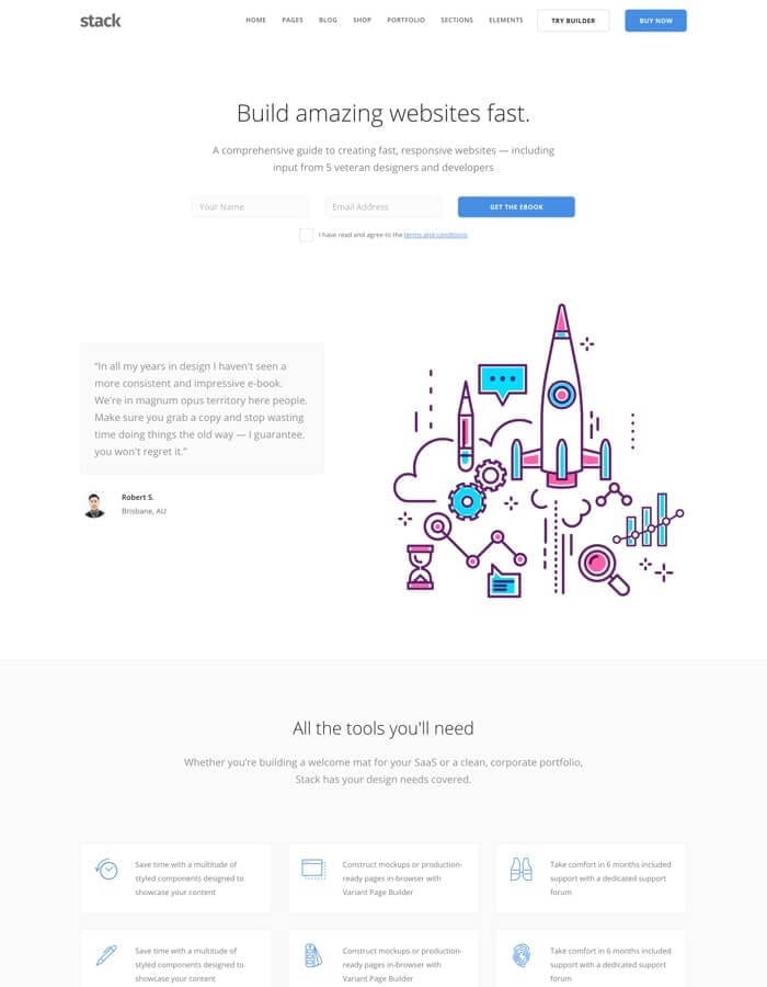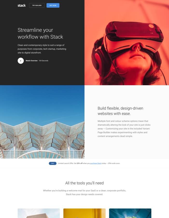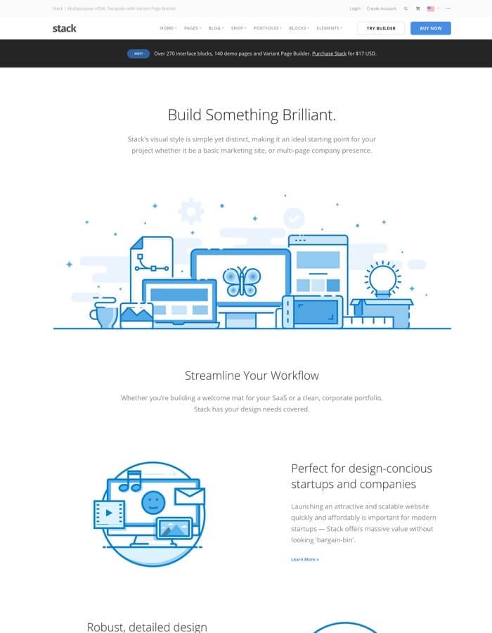 HOT! Over 300 interface blocks, 200 demo pages, Variant Page Builder and Visual Composer. Purchase Stack for $39 USD.