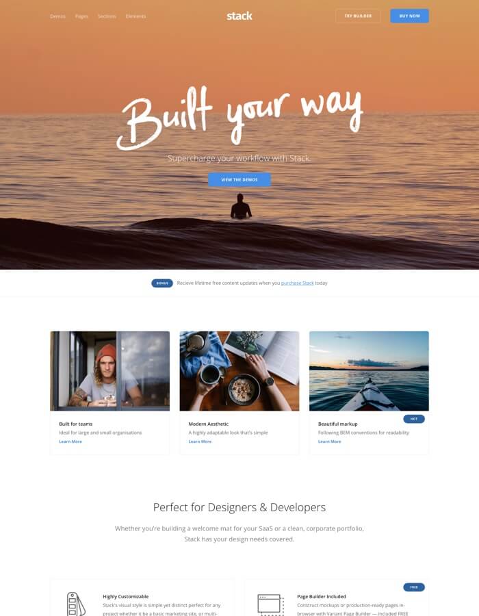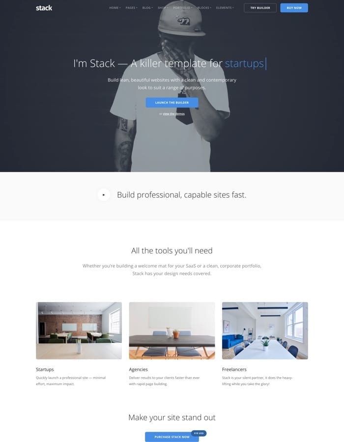 Whether you need a fast, SEO performant website put together easily, or a full corporate site with precise, granular control over elements, Stack is the theme you'll want for your next project.